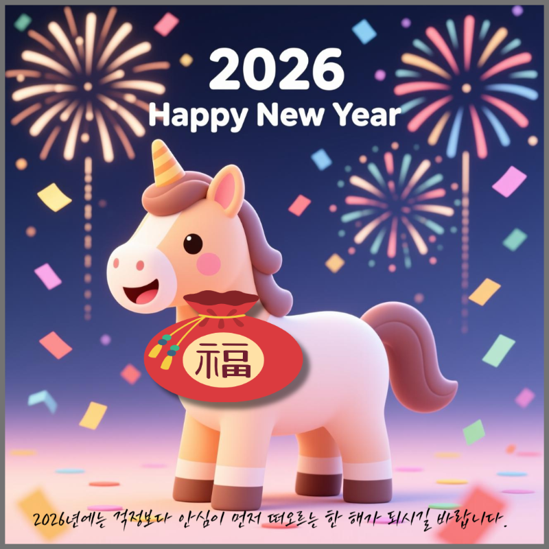 🐎바쁘다는 말로 안부를 미루다 보니 한 해가 훌쩍 지나갔네요. 그래도 이렇게 새해 인사를 전할 수 있어 다행입니다. 2026년에는 조금 더 자주 웃고, 덜 걱정하는 날들이 많아지길 바랍니다.